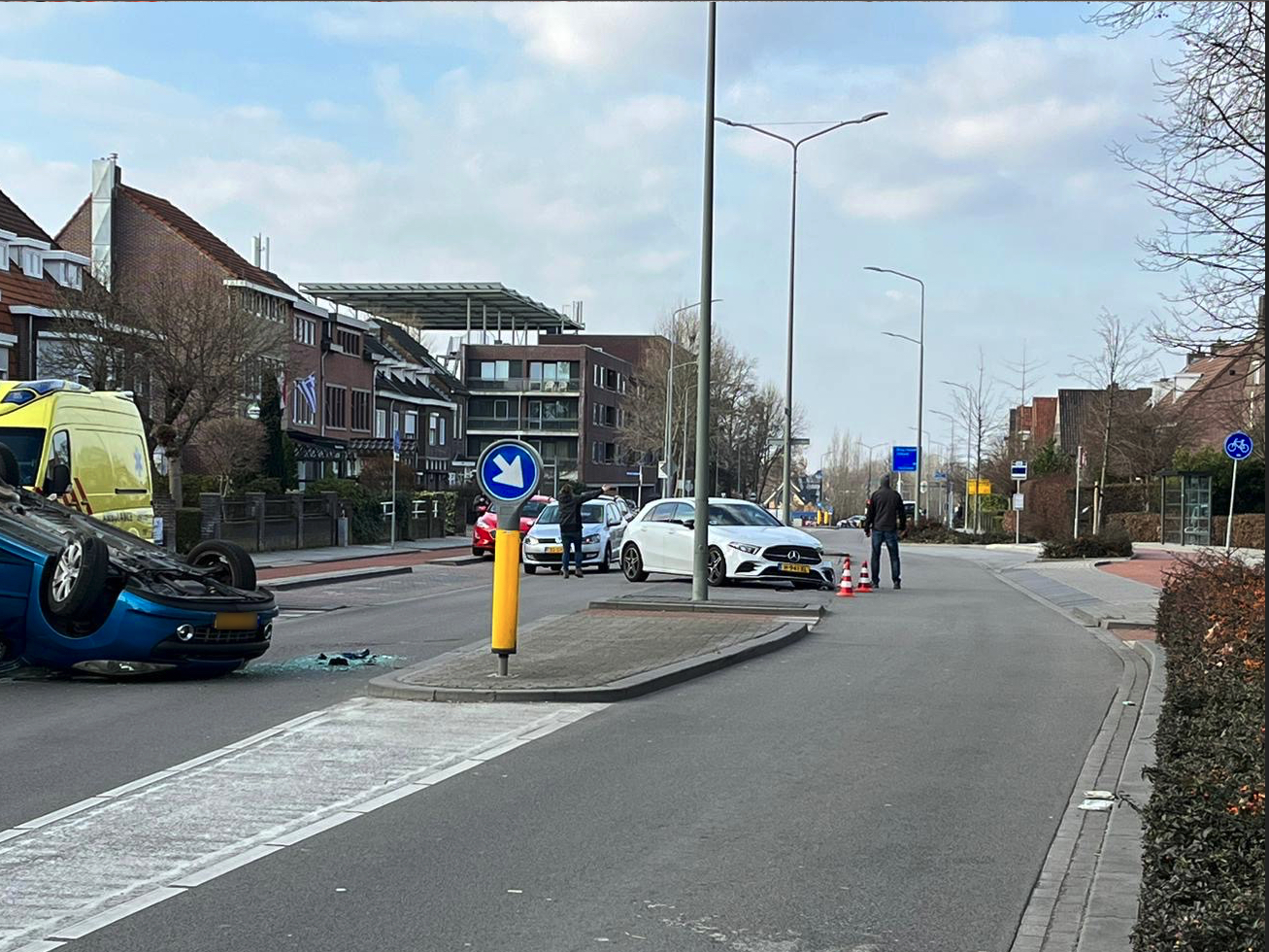 Auto eindigt op de kop na botsing