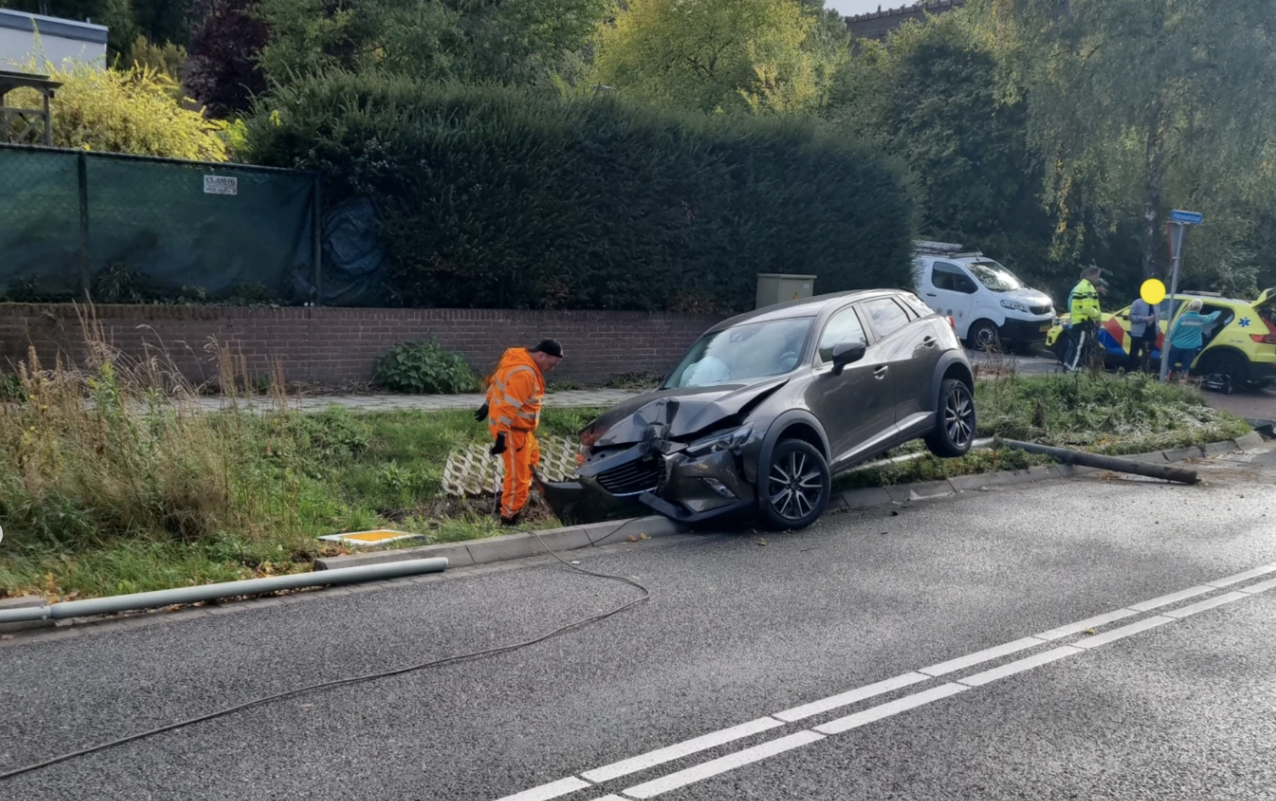 In Landgraaf is de bestuurder van een auto gewond geraakt bij een eenzijdige aanrijding. Vermoedelijk is de bestuurder kort daarvoor onwel geworden.
