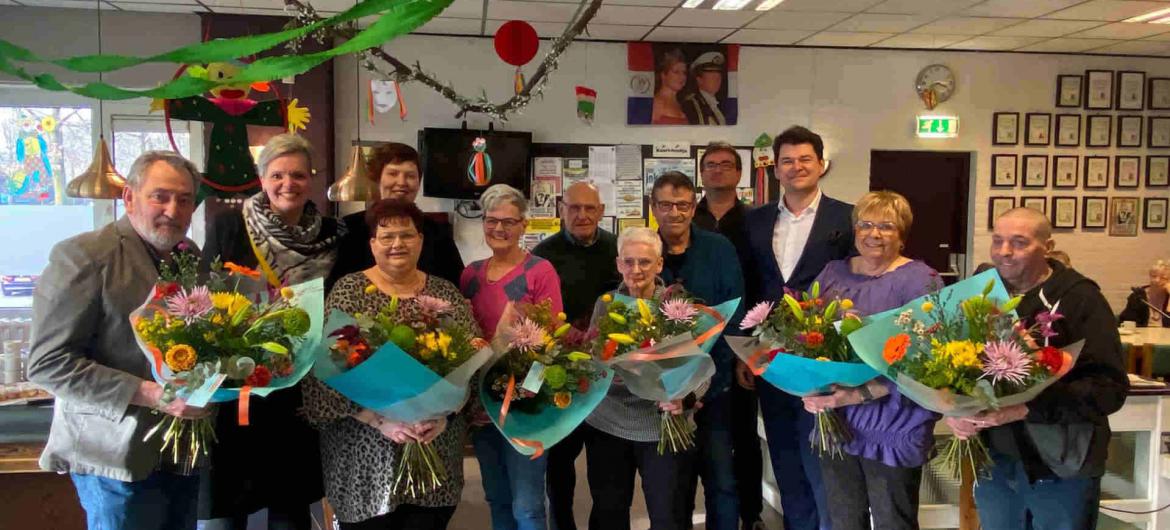 Wethouder Marco Peters heeft woensdagmiddag aan 7 vrijwilligers een bloemetje uitgereikt die zich op 26 januari extra hebben ingezet bij de brand in de Cookstraat.