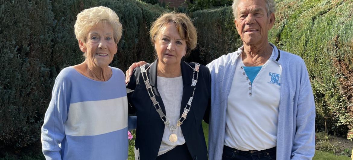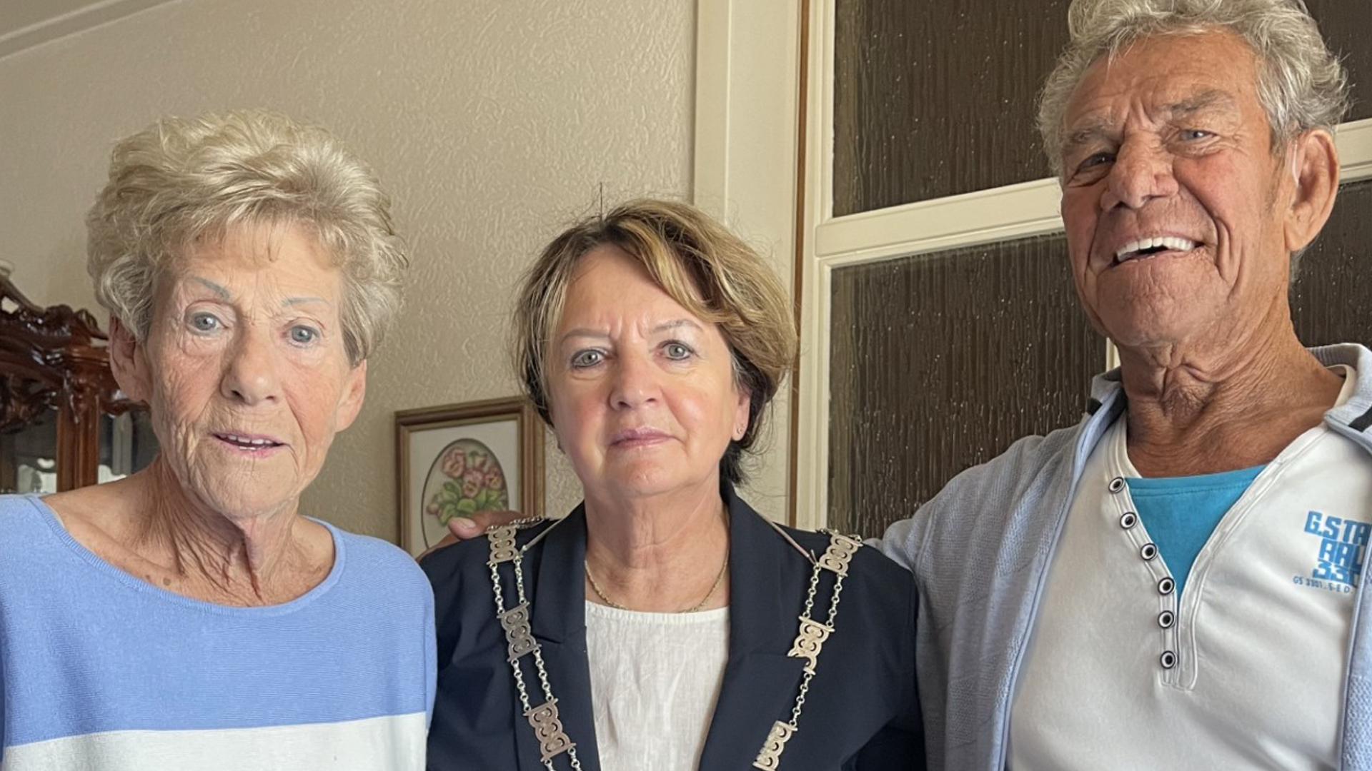 Burgemeester bezoekt diamanten bruidspaar Sjohn en Riekje Hofland