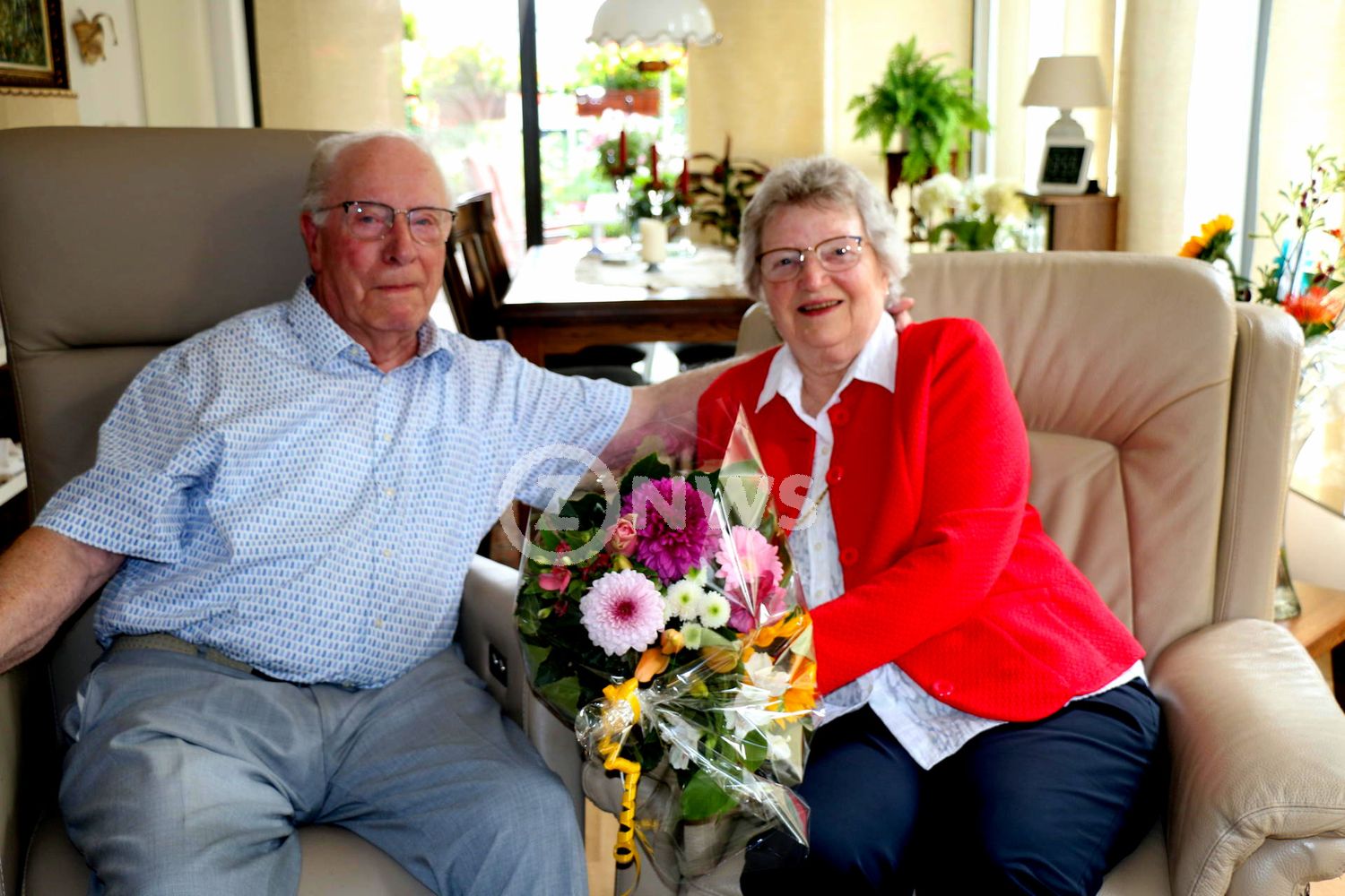 Zij kregen namens de gemeente een mooie ruiker bloemen en een unieke kristallen vaas met inscriptie aangeboden.