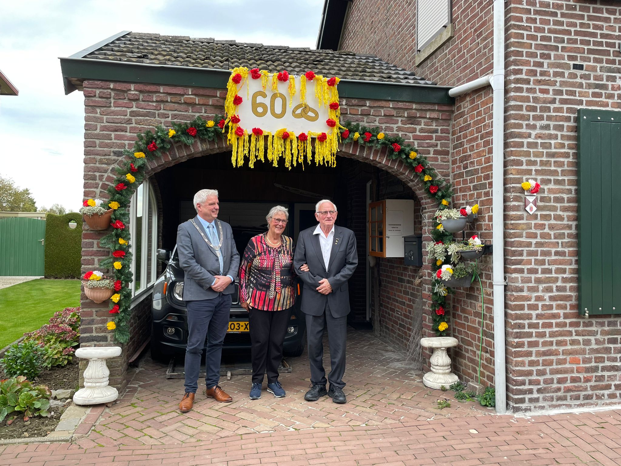 Het was maandag 60 jaar geleden dat Piet en Sjan Leunissen-Wolters in het huwelijksbootje stapten. Burgemeester Eric Geurts bezocht het echtpaar thuis in Puth.