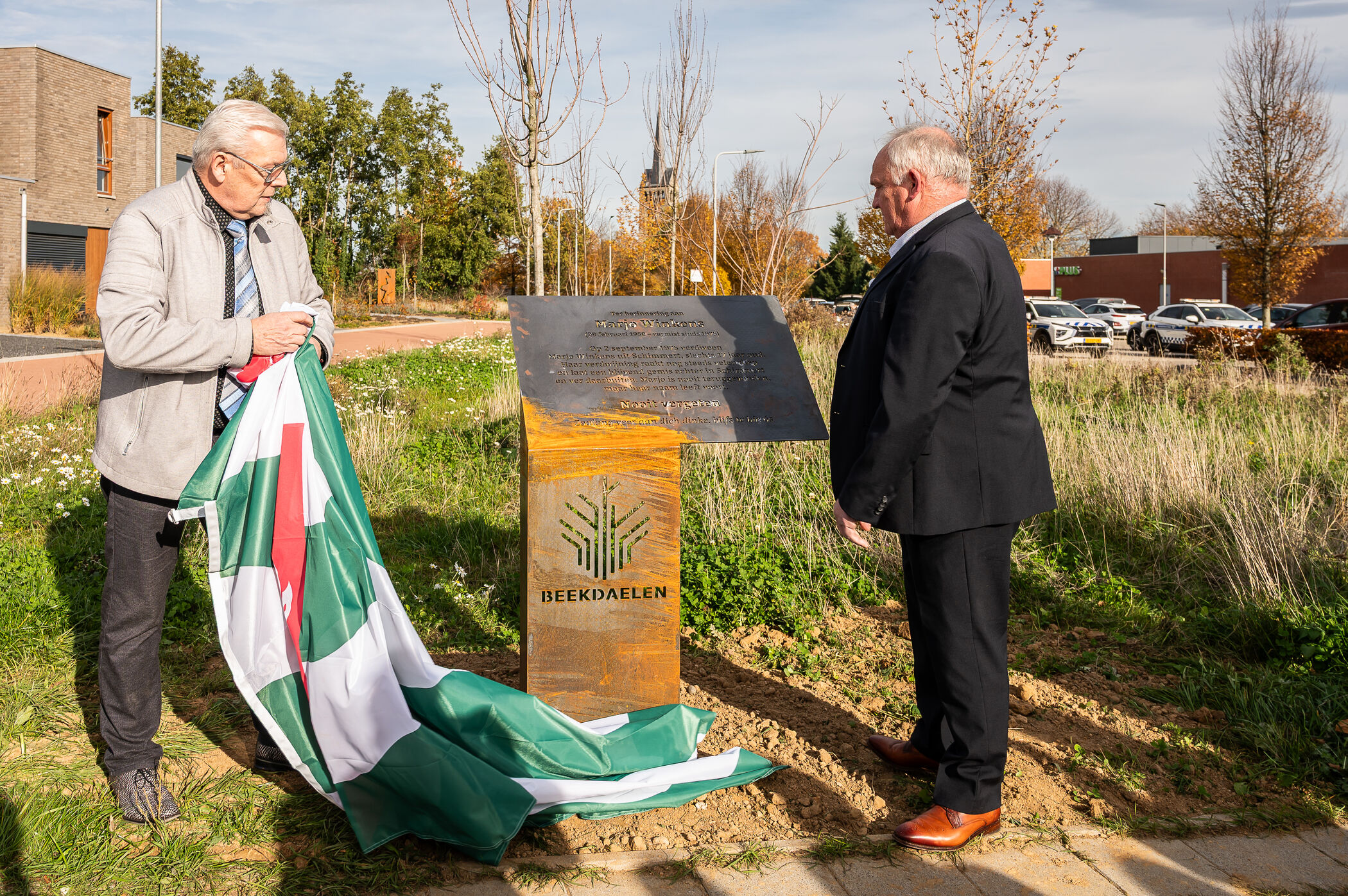 Wethouder Henk Reijnders heeft donderdag een monument onthult ter herinnering aan de verdwijning van Marjo Winkens in 1975. Familieleden en dorpsgenoten waren aanwezig bij de onthulling van de plaquette aan de Weidestraat in Schimmert.