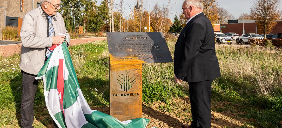 Het plantsoen is niet de definitieve plek van het herdenkingsmonument. Zodra de nieuwbouwwijk in Schimmert gerealiseerd is krijgt het daar een definitieve plek. Dan wordt er ook een bank geplaatst met een grote boom.