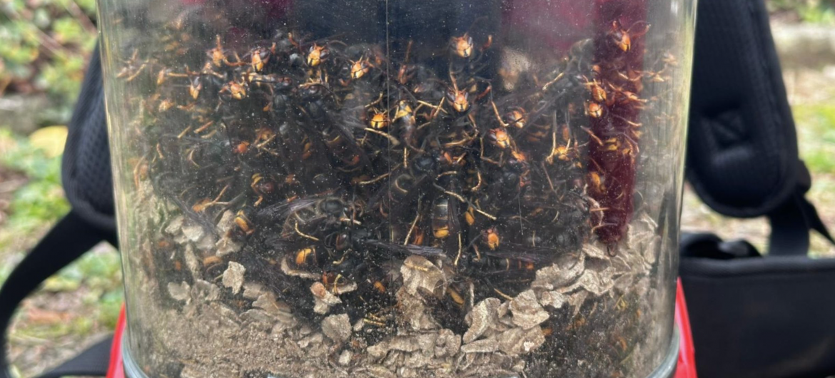 Een groot nest Aziatische hoornaars in de Paardestaarterf in Heerlerheide is in opdracht van de gemeente verwijderd.