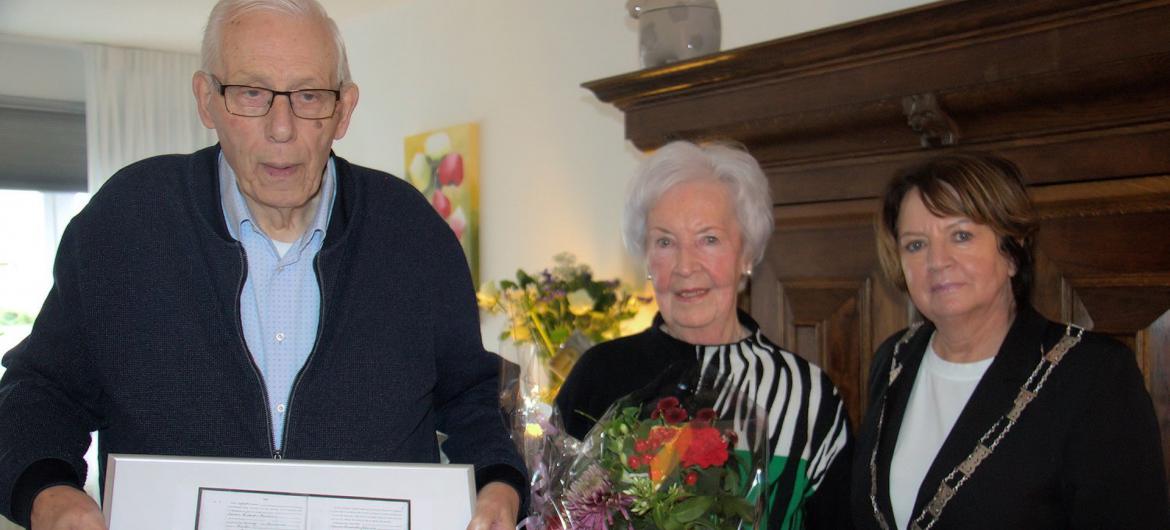 Huub en Lies Lamers-Bremen uit Brunssum zijn 65 jaar getrouwd. Burgemeester Wilma van der Rijt bezocht het briljanten echtpaar in hun woning aan de Julianastraat.