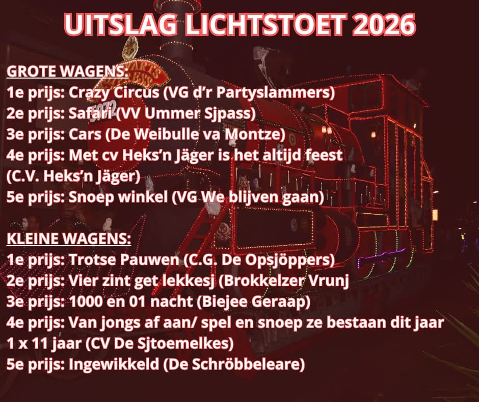 Carnavalsvereniging Sjilvend Alaaf kijkt tevreden terug op de lichtstoet van zaterdagavond. Met ruim 2100 deelnemers en een veelvoud aan bezoekers trok de stoet met verlichte voertuigen en personen voor de tiende keer door het dorp.