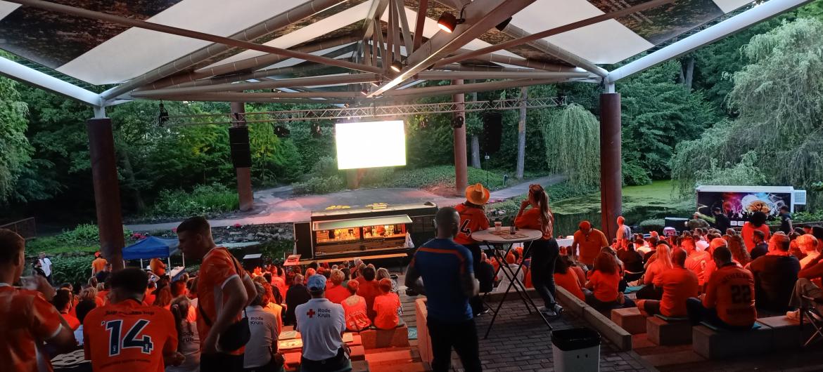 Oranjefans keken naar EK-nederlaag in Openluchttheater Brunssum
