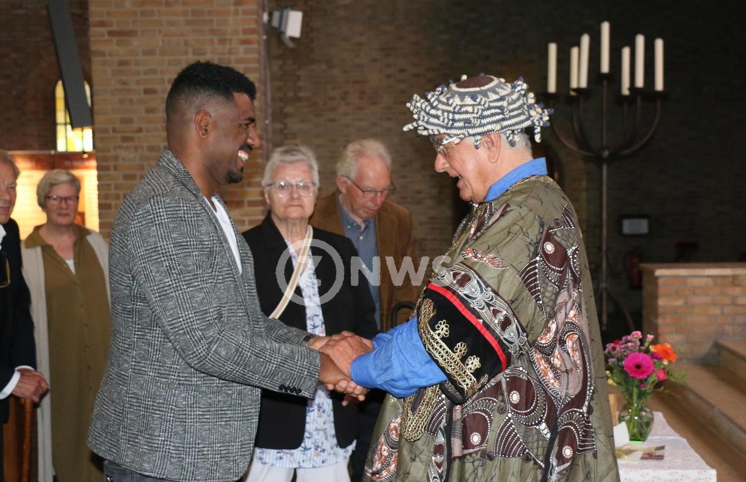 Uit handen van wethouder Mertens van Brunssum ontving hij een cadeau in de vorm van een geldbedrag voor Kameroen.