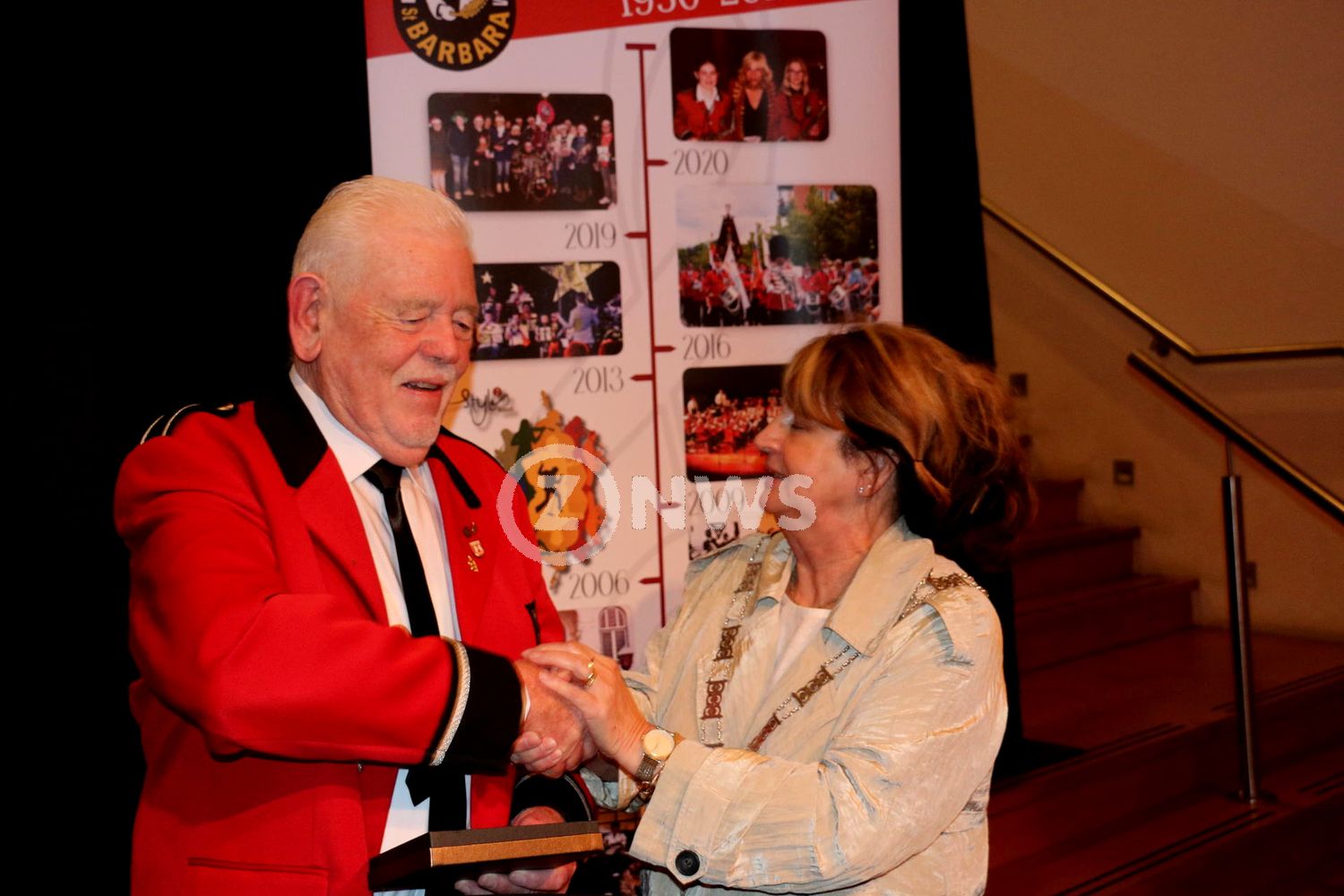 De plaquette werd uitgereikt tijdens de jaarlijkse Ceciliaviering van Fanfare Sint Barbara in d'r Brikke Oave. Bert is al meer dan 60 jaar lid van de fanfare. Door de jaren heen heeft hij diverse bestuurlijke functies vervuld. Daarnaast was hij verantwoordelijk voor het onderhoud van de instrumenten van de fanfare. Ook het organiseren van concertreizen viel onder zijn takenpakket.