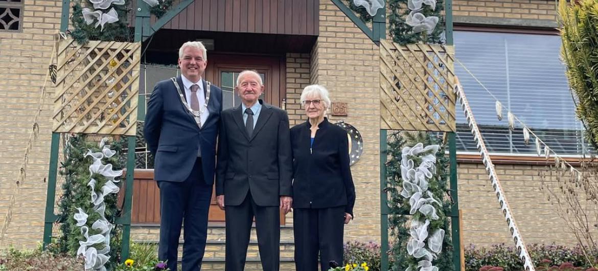 Zef Voragen en Trees Voragen-Cortlever zijn 70-jaar getrouwd. Zij kregen daarom zondag bezoek van burgemeester Eric Geurts. Hij feliciteerde het platina bruidspaar namens de gemeente Beekdaelen.