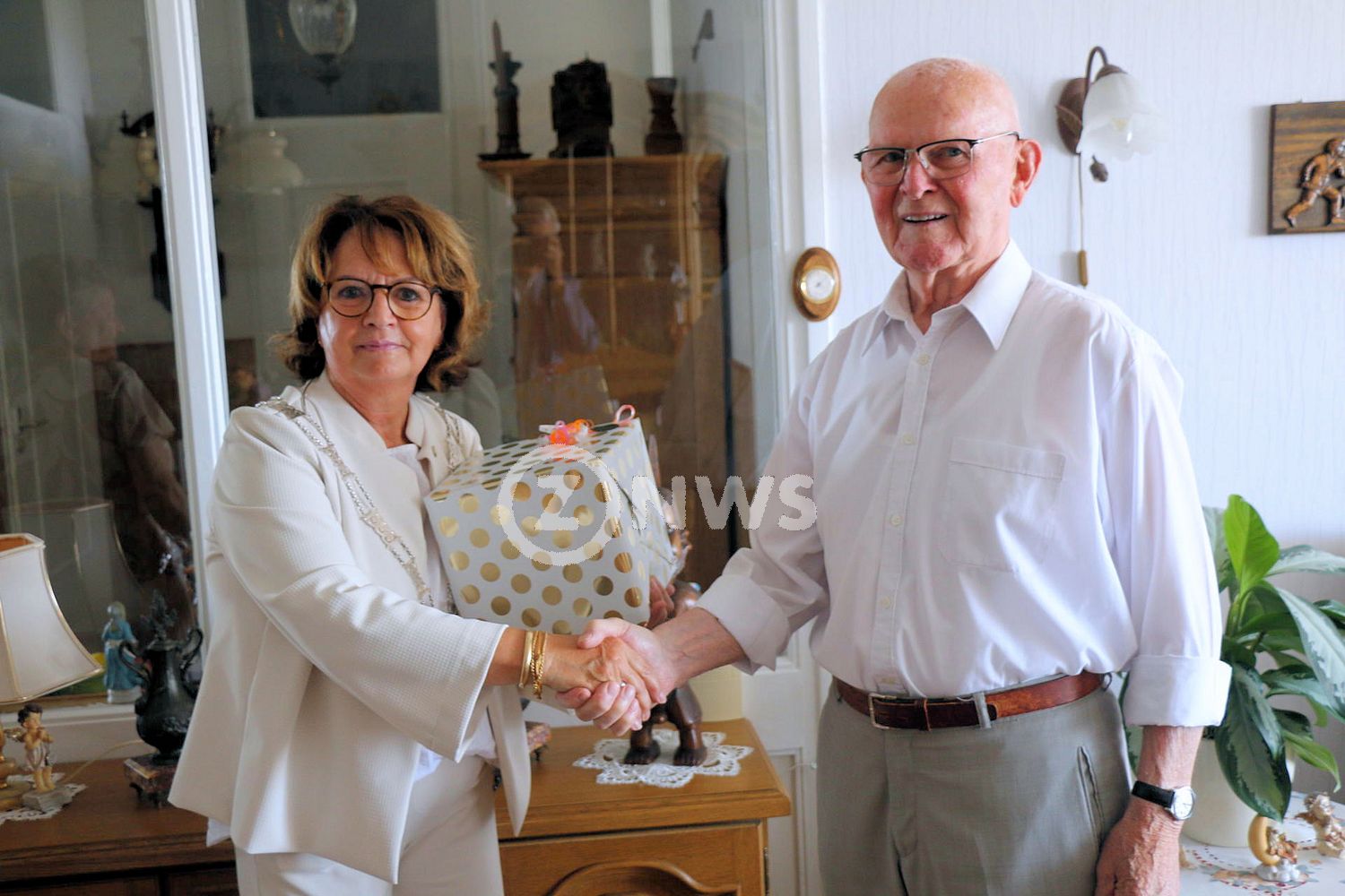 Zestig jaar geleden hoorden Rinus en Coba Langenberg-Möller de huwelijksklokken luiden. Burgemeester Wilma van der Rijt bezocht het echtpaar en feliciteerde hen met een mooie bos bloemen en een uniek bijpassende kristallen vaas met inscriptie.