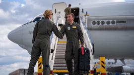 VIDEO: Hoogste NAVO-baas bezoekt JFC en Awacs-basis Op de Awacs-basis kreeg hij een rondleiding in één van de radarvliegtuigen.