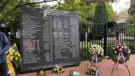 Scholieren leggen bloemenkransen bij Joods monument Leerlingen van het Broeklandcollege leggen jaarlijks kransen bij het monument.