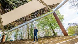 VIDEO: Openluchttheater krijgt steeds meer vorm Doek over over stalen constructie getrokken. Bouw nadert voltooiing.