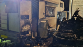 Auto uitgebrand in Schinveld, camper zwaar beschadigd Het vuur sloeg over naar een ernaast geparkeerde camper, die daardoor ook flink beschadigd raakte.