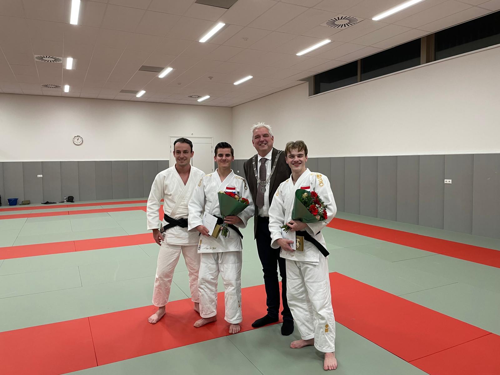 De wedstrijden vonden het afgelopen weekend plaats. Maandag bezocht burgemeester Eric Geurts de twee topsporters in de judoruimte van SVO Schinnen.
