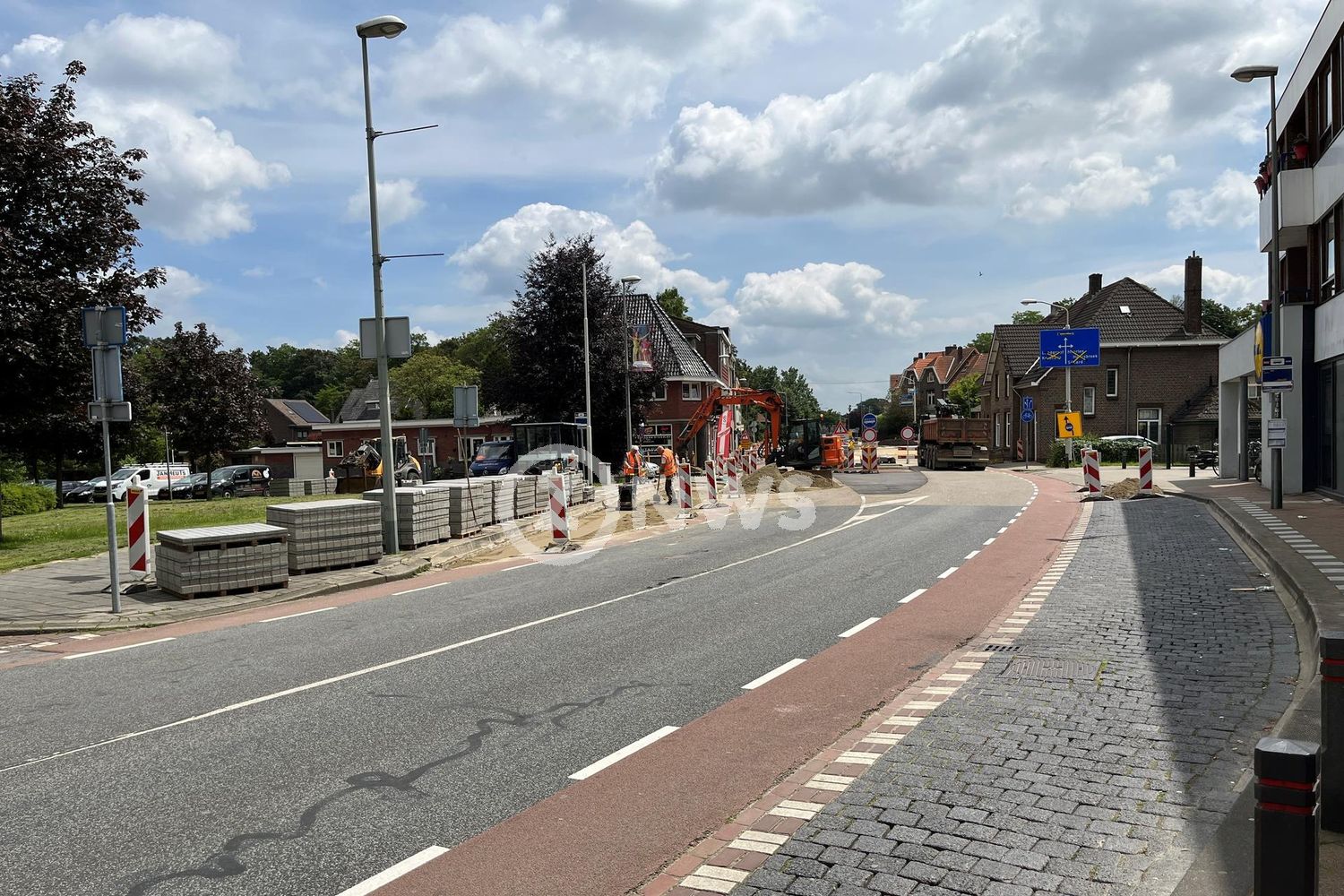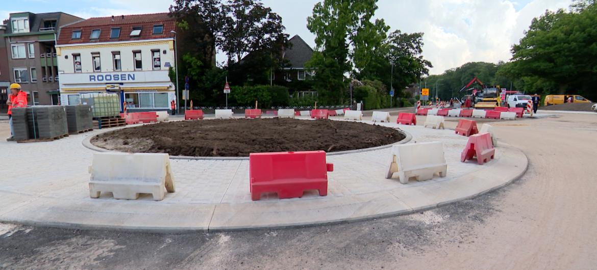 Op het Bodemplein is het nog een hele klus voordat er weer auto's op mogen rijden. De oude stoplichten zijn verwijderd en de gemeente Brunssum heeft gekozen voor een nieuwe manier om de straat beter in te richten. "Normaal had je een driebaansweg om naar links, rechtdoor of naar rechts te gaan. Met deze dubbele rotonde is dat maar één baan. De rest van de vierkante meters die wij over hadden, zijn groen gemaakt", vertelt wethouder Hugo Janssen (Verkeer).