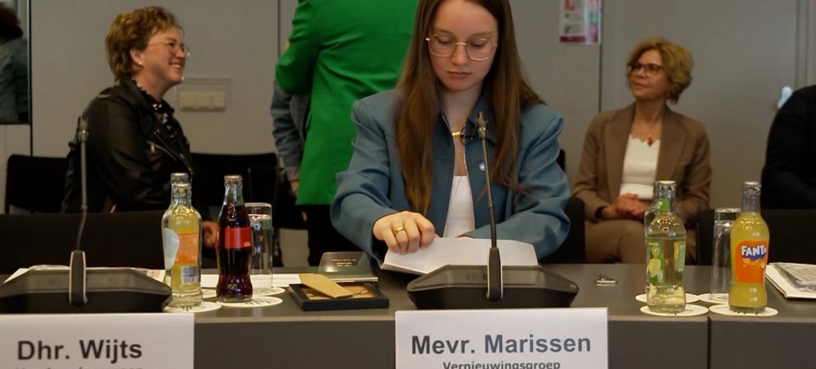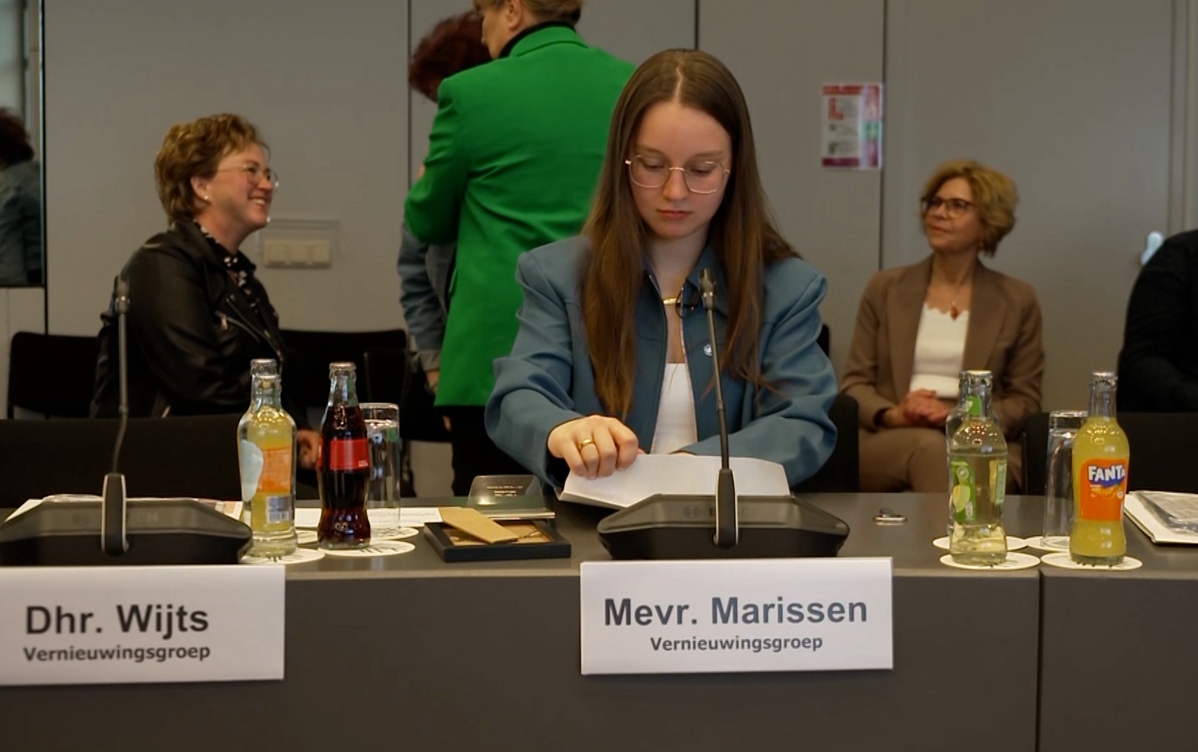 Tijdens de installatie van de nieuwe raadsleden, op 1 aril in het gemeentehuis in Nuth, kreeg ook de 19-jarige Eline Marissen een plek in de raad van Beekdaelen.