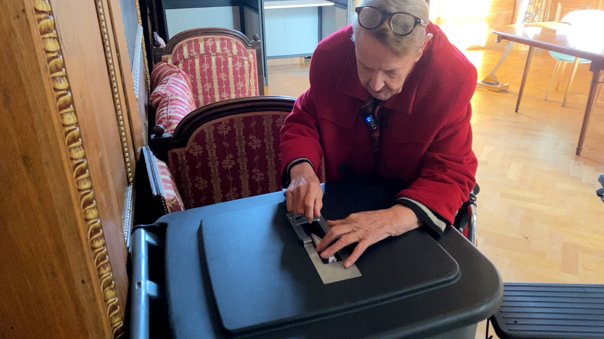Ria Maalsté uit Amstenrade had de bus gereserveerd om haar stem uit te brengen op Kasteel Amstenrade. De senior maakte zich wel zorgen wegens de bereikbaarheid van het kasteel. "Ik heb de gemeente gebeld en gevraagd om een paar planken te leggen over de kiezel, die laag is me te dik daar. Maar dat vonden ze te gevaarlijk", zegt Maalsté.