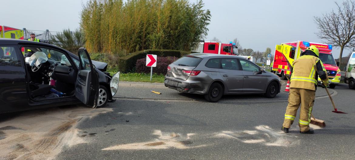 Bij een verkeersongeluk op een rotonde in Gangelt zijn vier personen gewond geraakt, onder wie twee kinderen. Het ongeluk gebeurde maandagmiddag rond 15.00 uur.