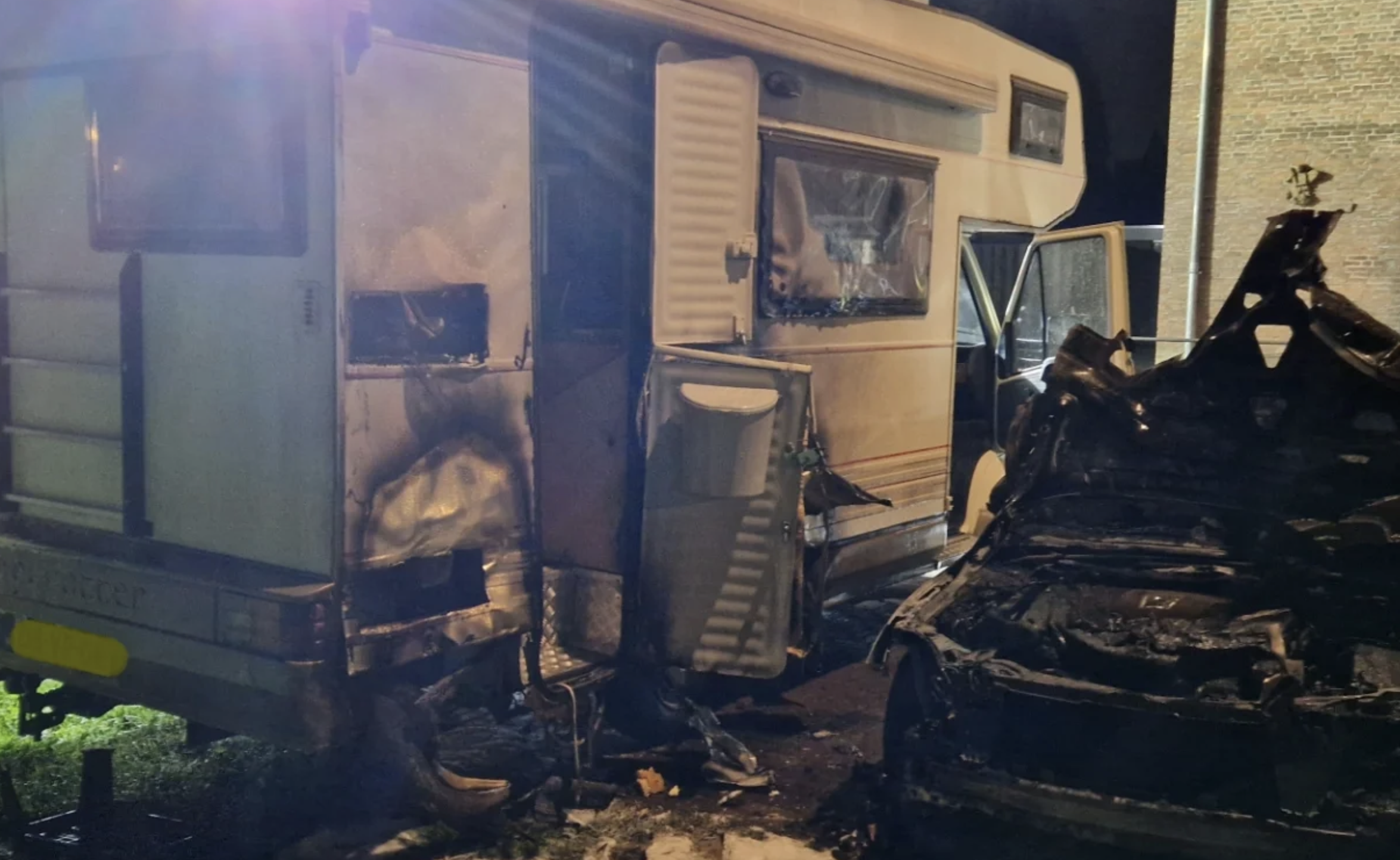 Het vuur sloeg over naar een ernaast geparkeerde camper, die daardoor ook flink beschadigd raakte.