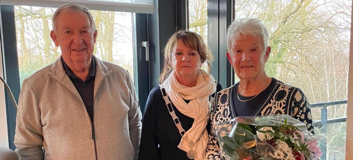 Maria en Nico Berger-Montree vierden maandag hun 60-jarig huwelijksfeest. Burgemeester Wilma van der Rijt bezocht het echtpaar ter gelegenheid van dit diamanten jubileum, om hen namens de gemeente Brunssum te feliciteren.