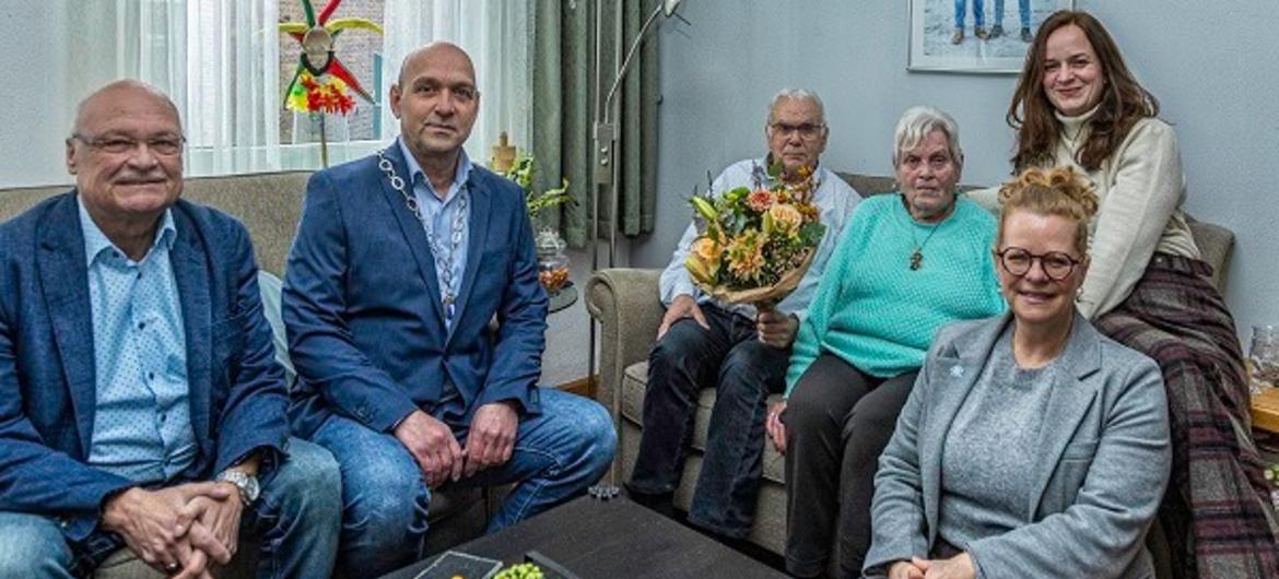 Peter en Ria Starmans-Wierts stapten 60 jaar geleden in het huwelijksbootje. Een bijzondere mijlpaal, vindt ook het gemeentebestuur van Simpelveld.