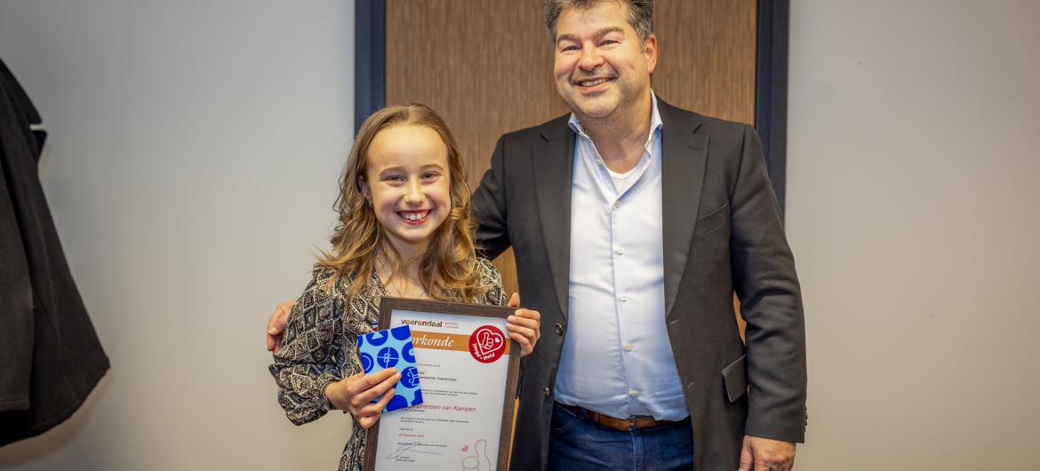 De 9-jarige Joya heeft een jeugdlintje gekregen van de gemeente Voerendaal. Joya krijgt deze waardering omdat zij zich afgelopen jaar heeft ingezet voor het Kinderboeken Leesteam.