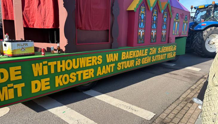 Nieuws Carnavalswagen in Hulsberg zorgt voor politieke knipoog Een dronken wethouder De Koster veroorzaakte in mei vorig jaar een aanrijding in Thull.