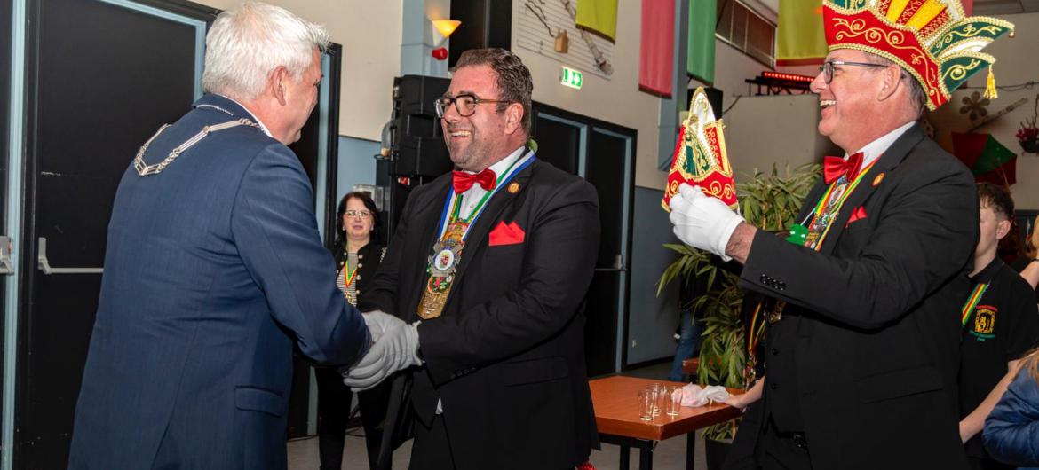 De burgemeester verraste Rob tijdens de prinsenreceptie van de carnavalsvereniging en feliciteerde hem met deze onderscheiding.