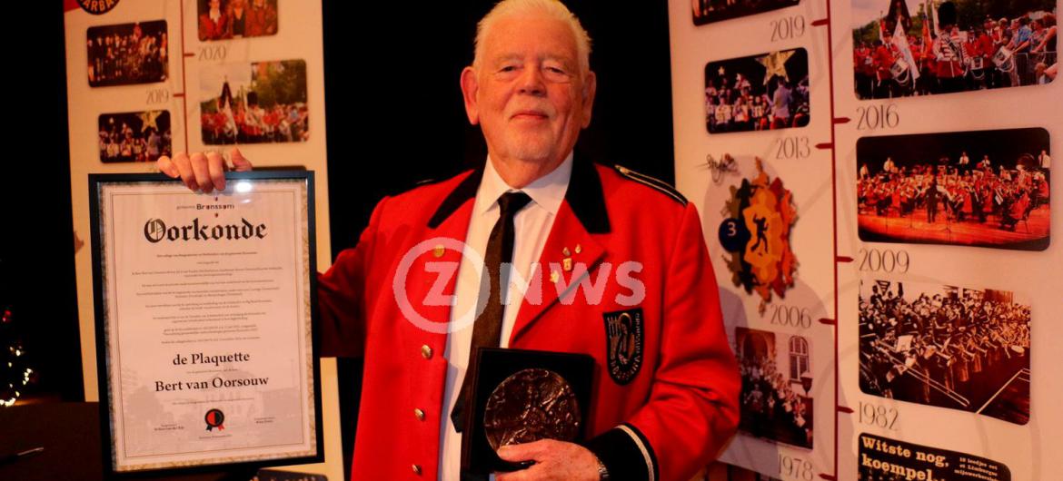 De plaquette werd uitgereikt tijdens de jaarlijkse Ceciliaviering van Fanfare Sint Barbara in d'r Brikke Oave. Bert is al meer dan 60 jaar lid van de fanfare. Door de jaren heen heeft hij diverse bestuurlijke functies vervuld. Daarnaast was hij verantwoordelijk voor het onderhoud van de instrumenten van de fanfare. Ook het organiseren van concertreizen viel onder zijn takenpakket.