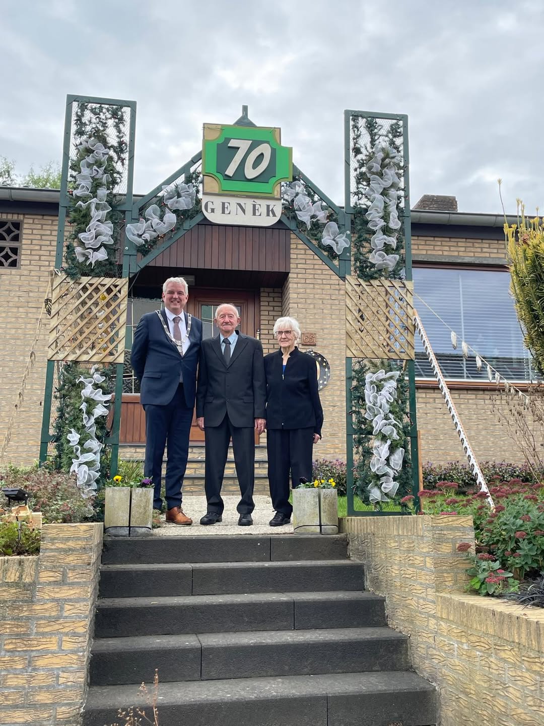 Zef Voragen en Trees Voragen-Cortlever zijn 70-jaar getrouwd. Zij kregen daarom zondag bezoek van burgemeester Eric Geurts. Hij feliciteerde het platina bruidspaar namens de gemeente Beekdaelen.