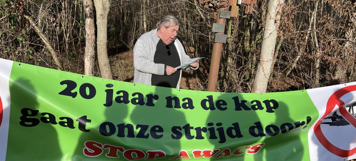 Vereniging Stop Awacs heeft zaterdag stilgestaan bij de bomenkap 20 jaar geleden. Toen werd onder fel protest 6 hectare bos onder de aanvliegroute van de Awacs-basis met de grond gelijk gemaakt.