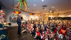 Sleuteloverdracht in Voerendaal volgeboekt Vanwege veiligheidsredenen kunnen alleen mensen met een polsbandje het gemeentehuis betreden.