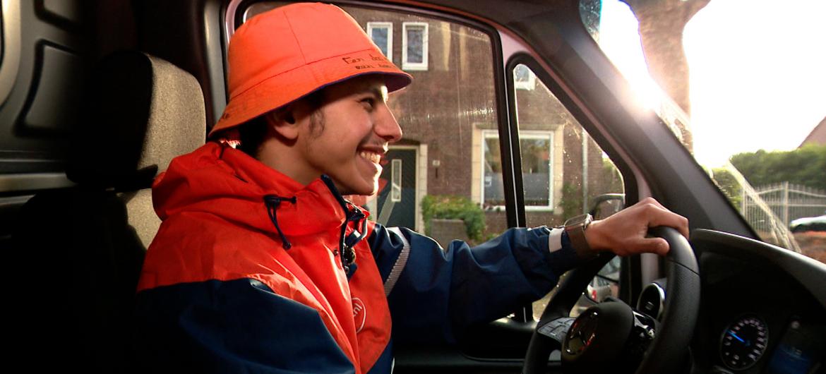 Postbezorger Mohamed El Haddadi (20) uit Brunssum tovert bij iedereen op zijn route een glimlach op het gezicht. Dat doet hij door een zelfontworpen, getekende kerstkaart cadeau te doen.